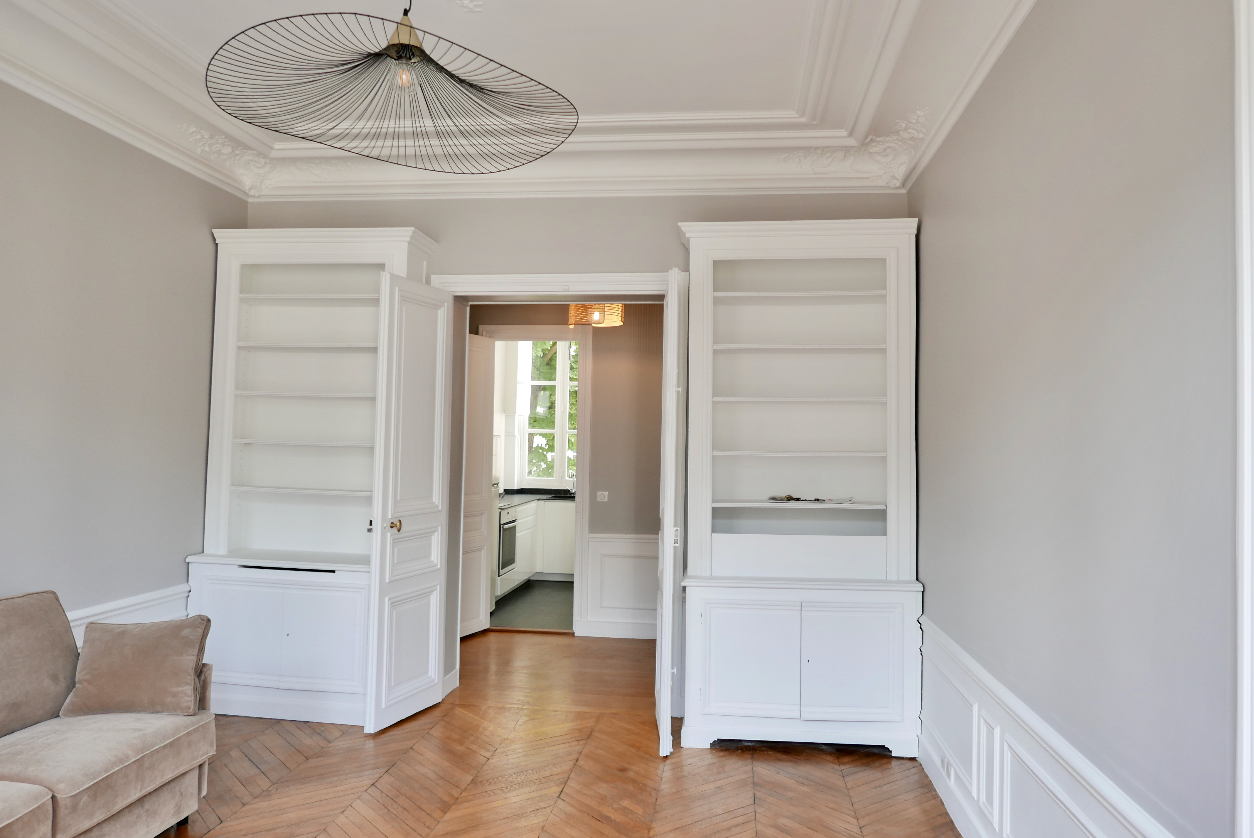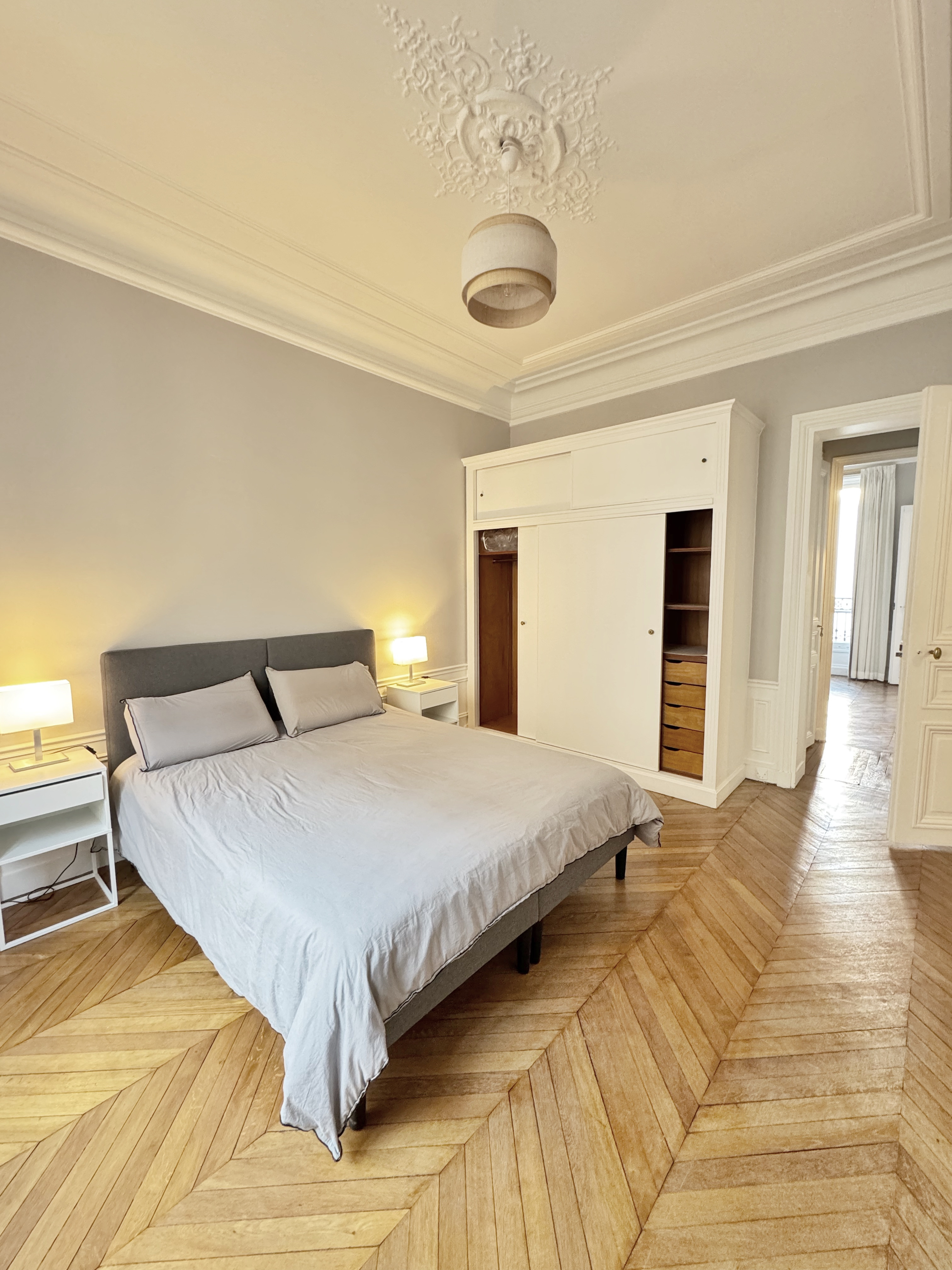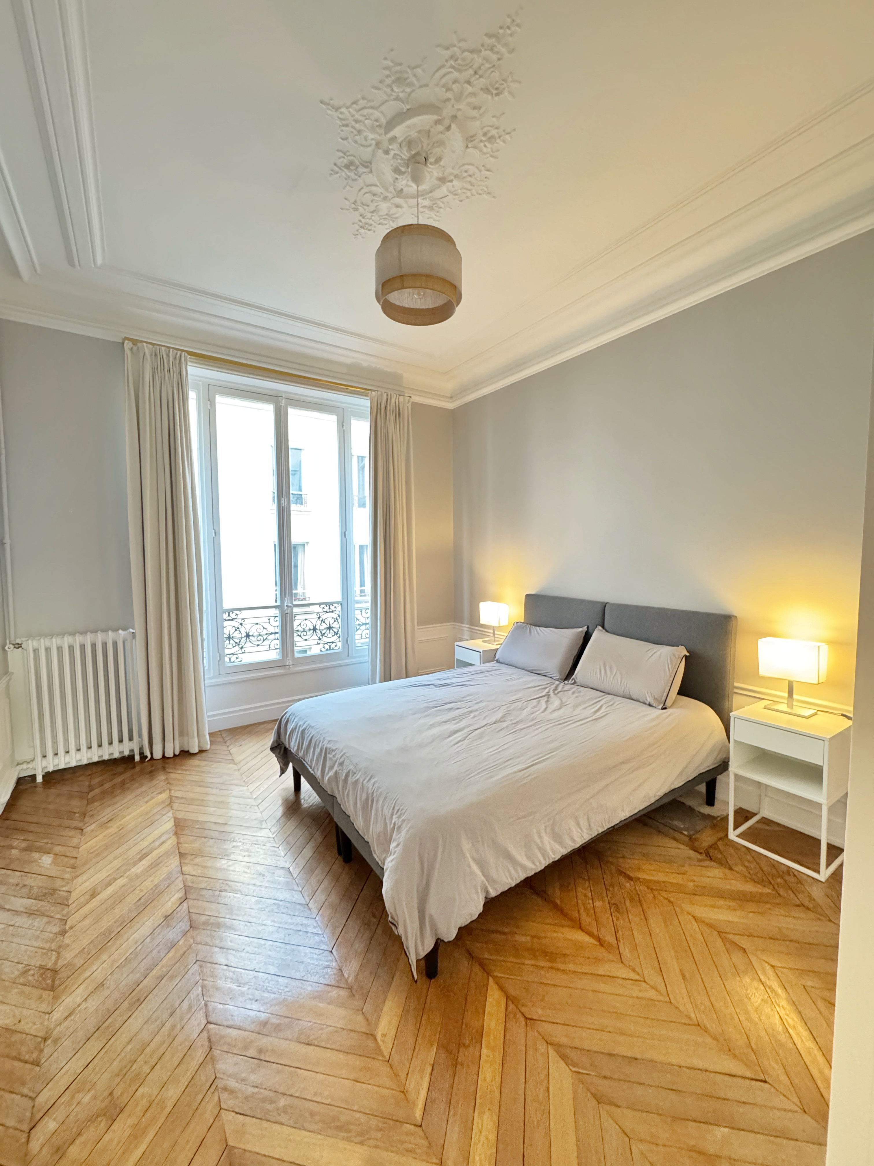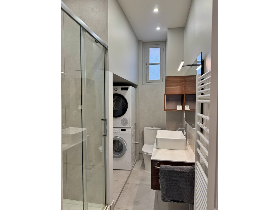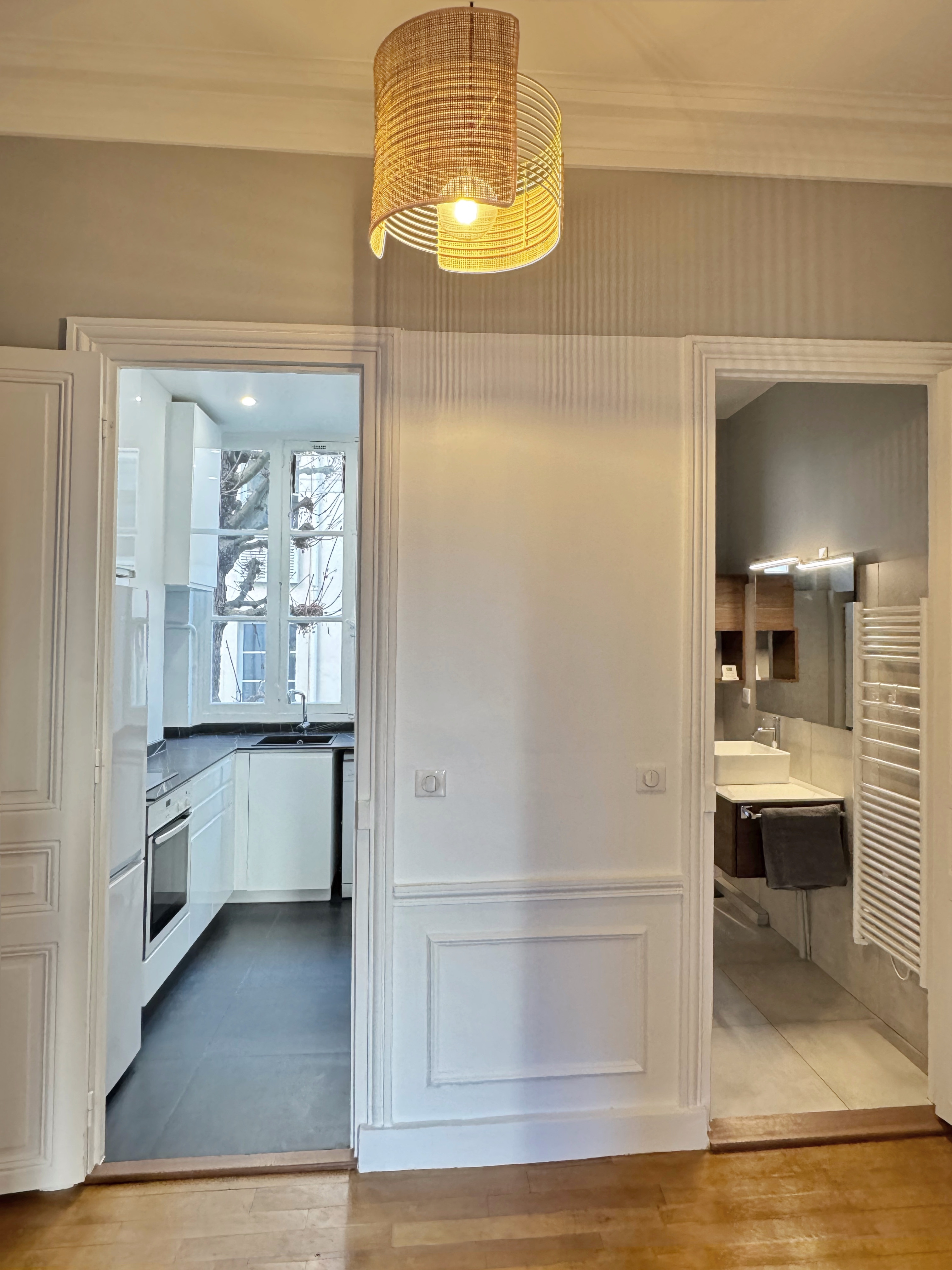 3 pièces de 68 m2 composé d'une galerie d'entrée, un séjour avec balcon sur l'impasse, une cuisine toute équipée, deux grandes chambres avec placards et dressing, une salle de douche avec machine LL et sèche linge + WC. Parquet, moulures, belle hauteur sous plafond