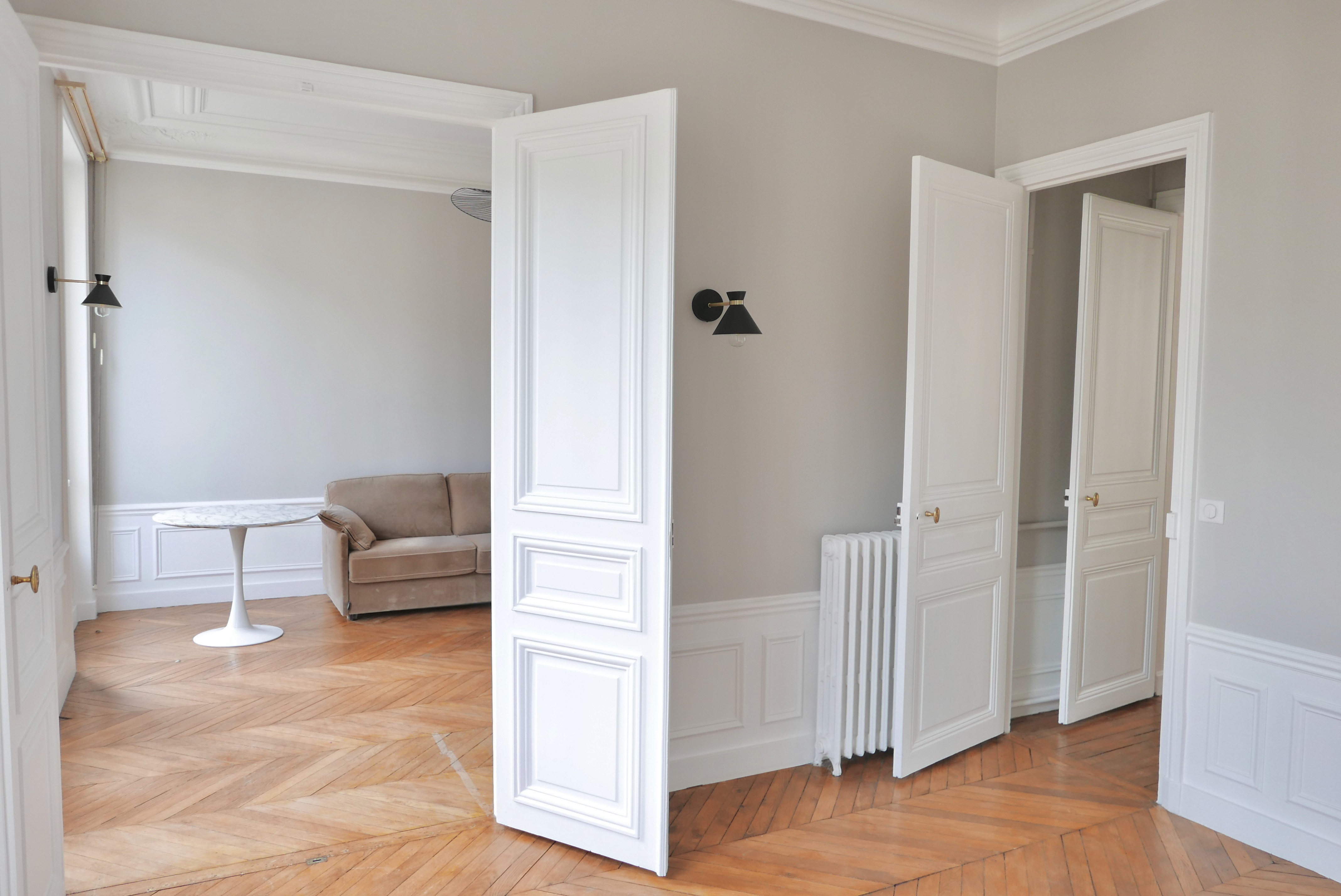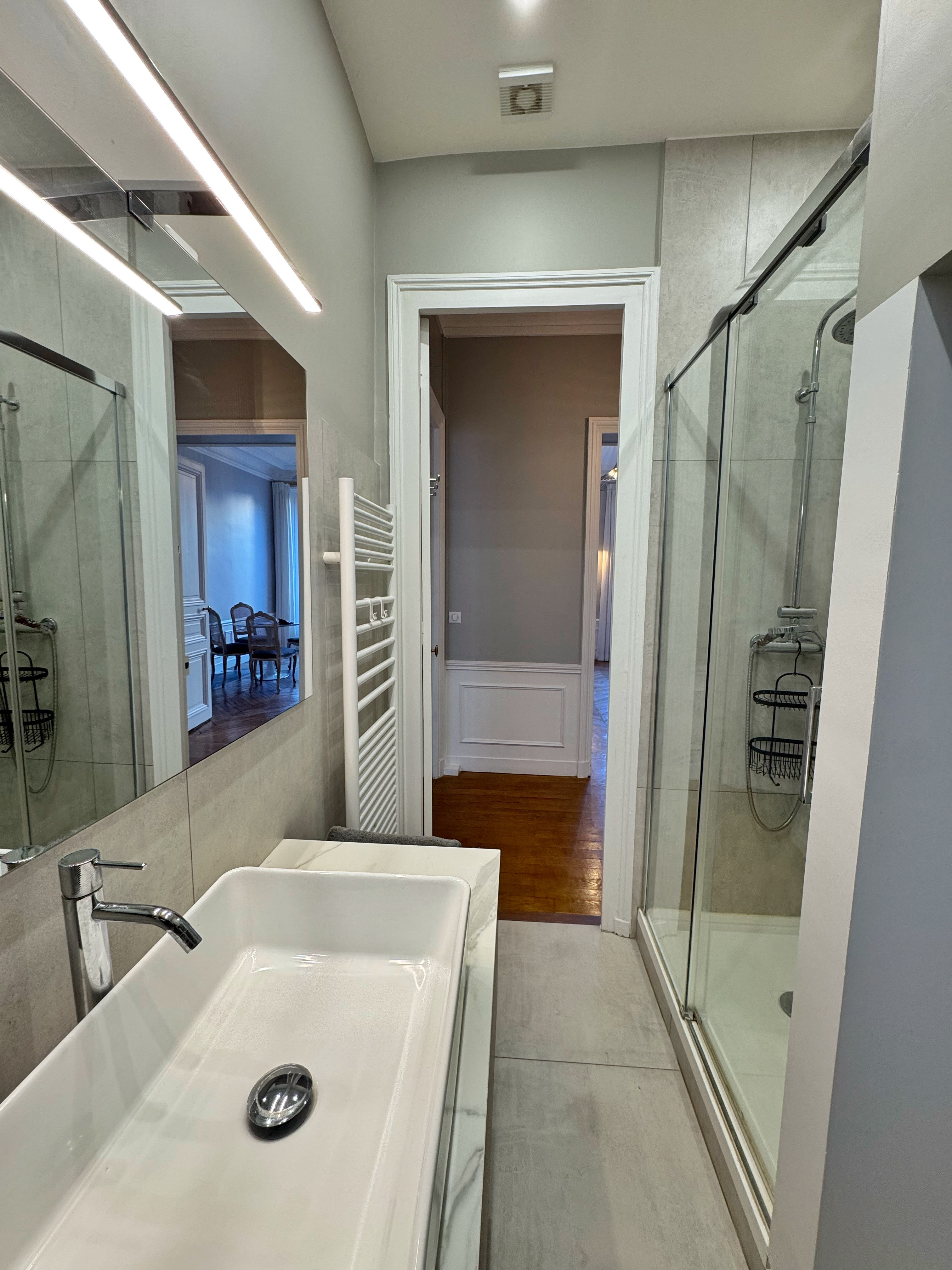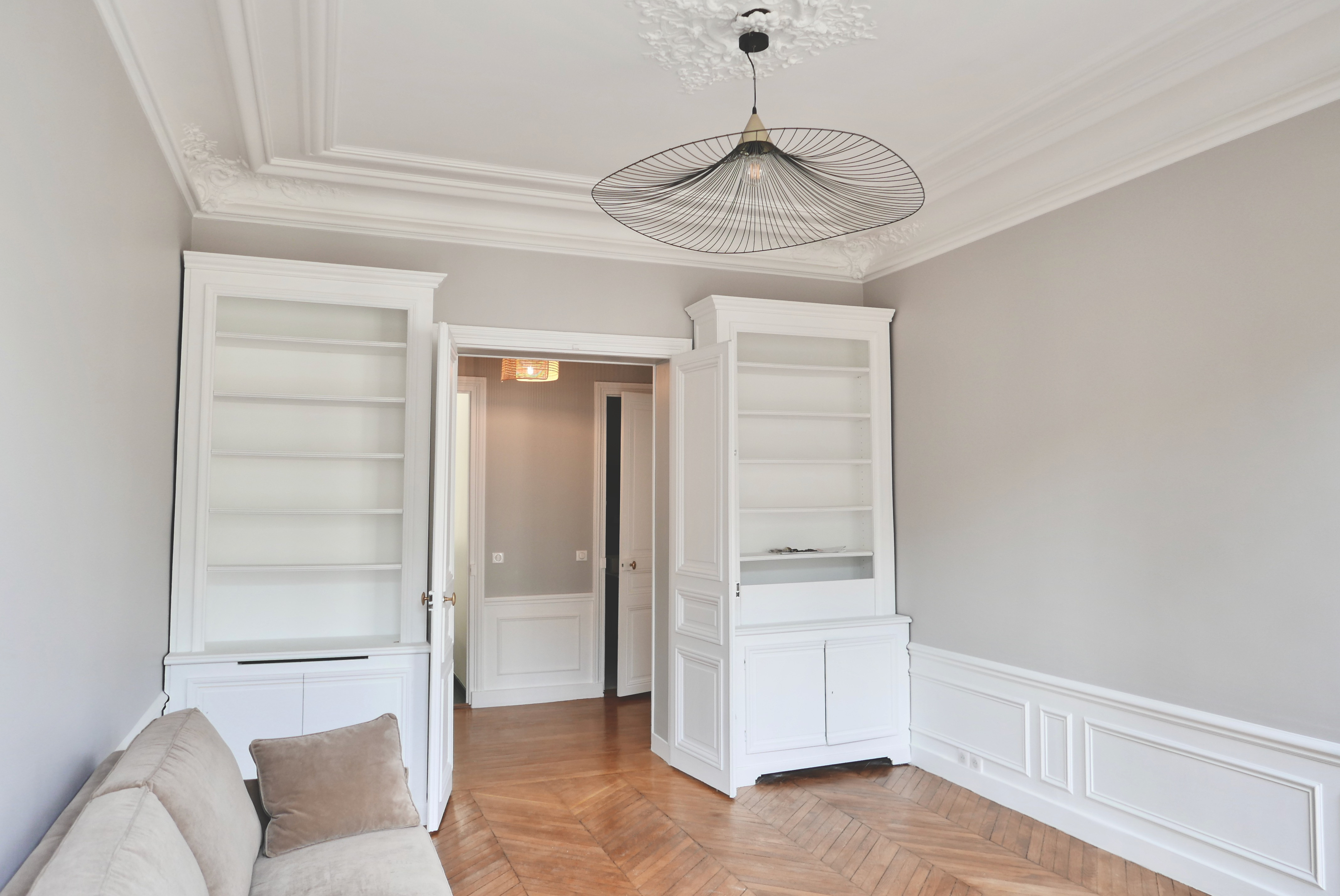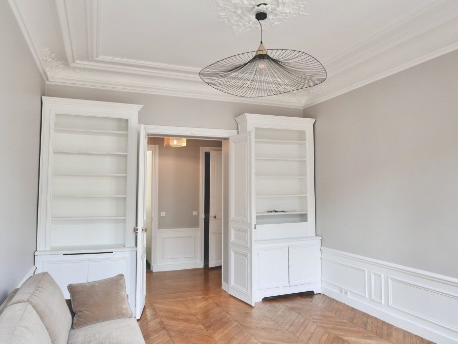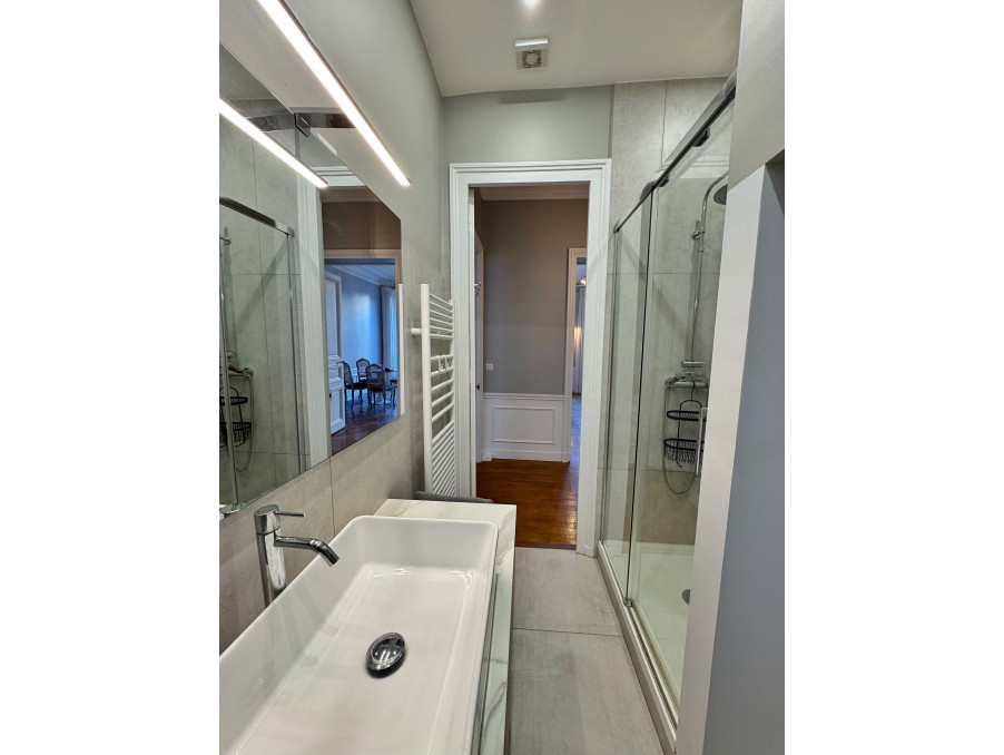 3 pièces de 68 m2 composé d'une galerie d'entrée, un séjour avec balcon sur l'impasse, une cuisine toute équipée, deux grandes chambres avec placards et dressing, une salle de douche avec machine LL et sèche linge + WC. Parquet, moulures, belle hauteur sous plafond