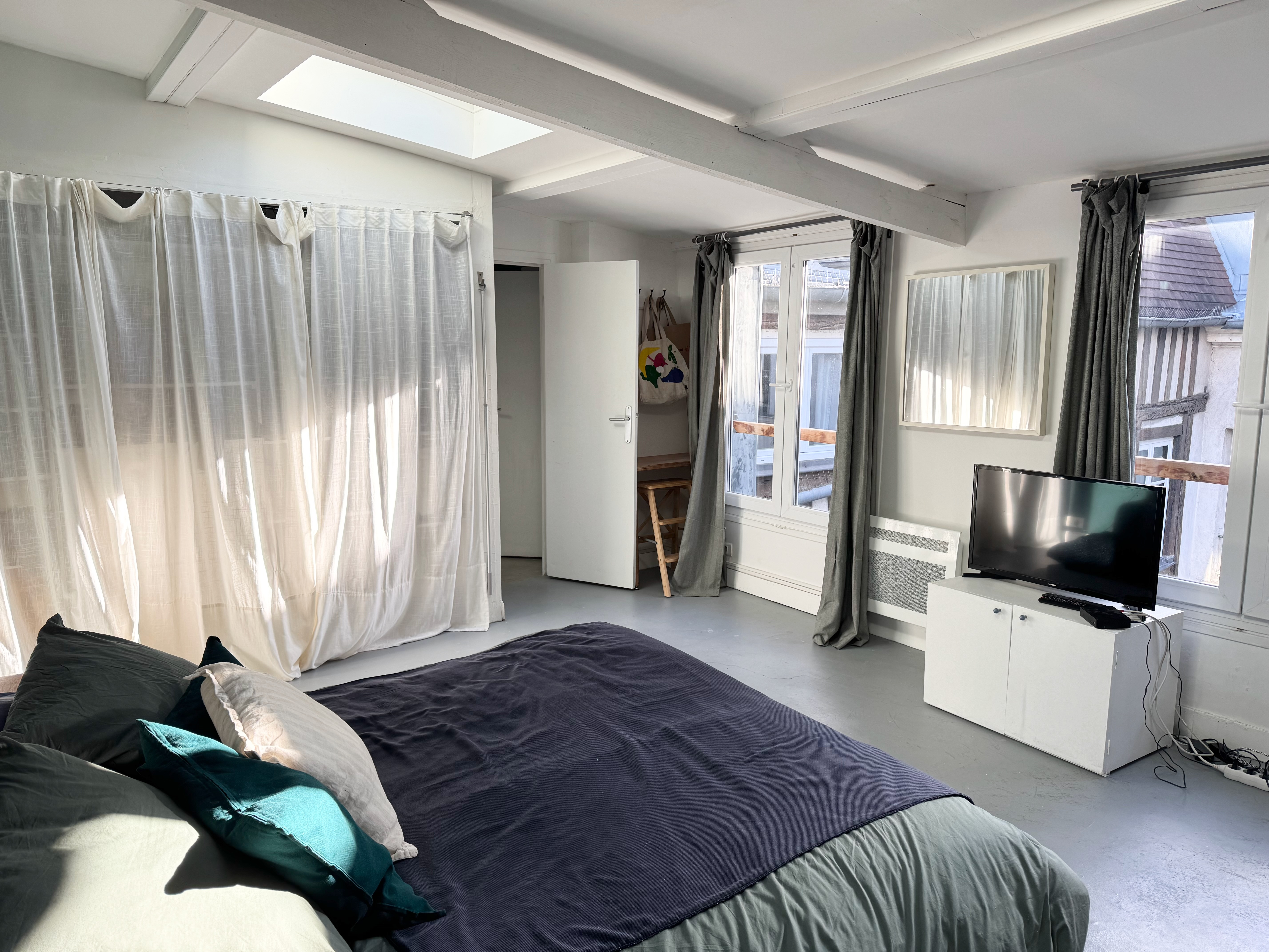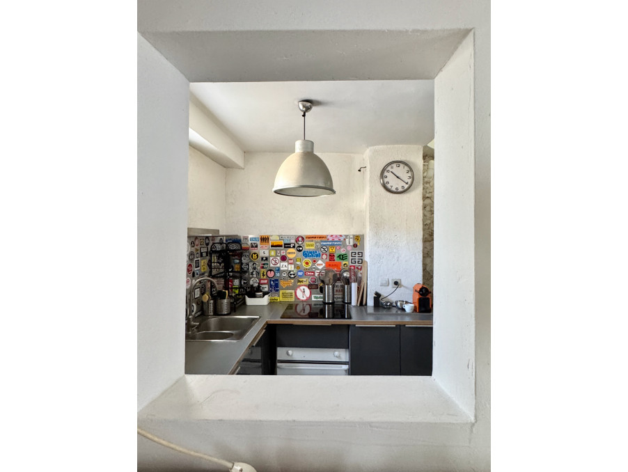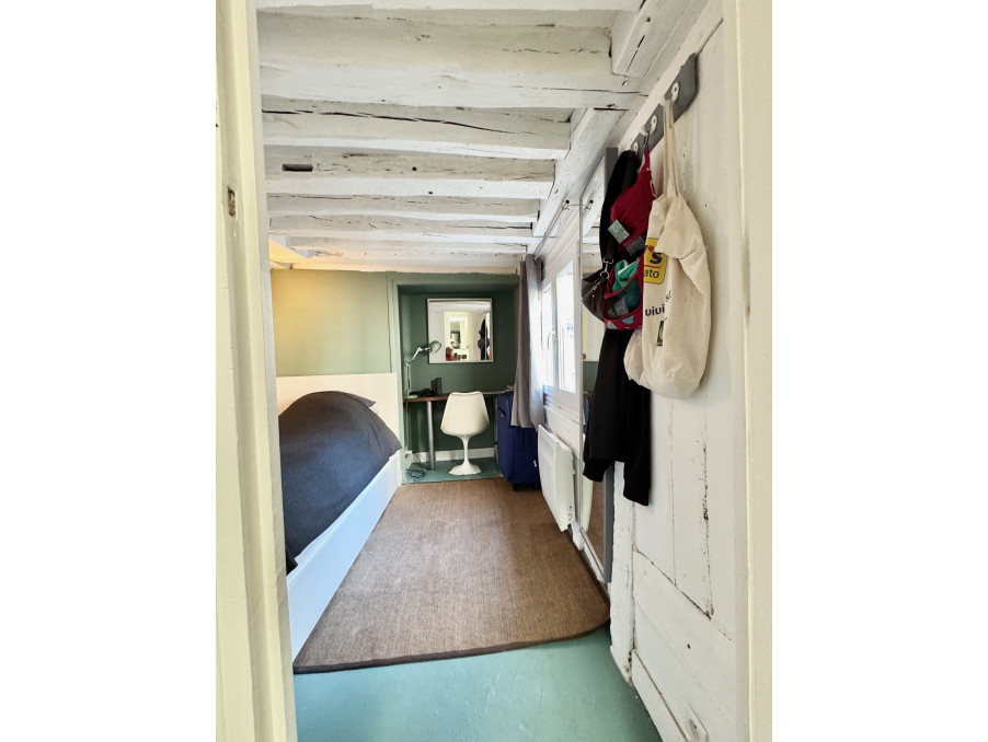 Au 3ème étage : entrée avec dressing, wc invités, séjour avec poutres apparentes, cuisine équipée semi ouverte.