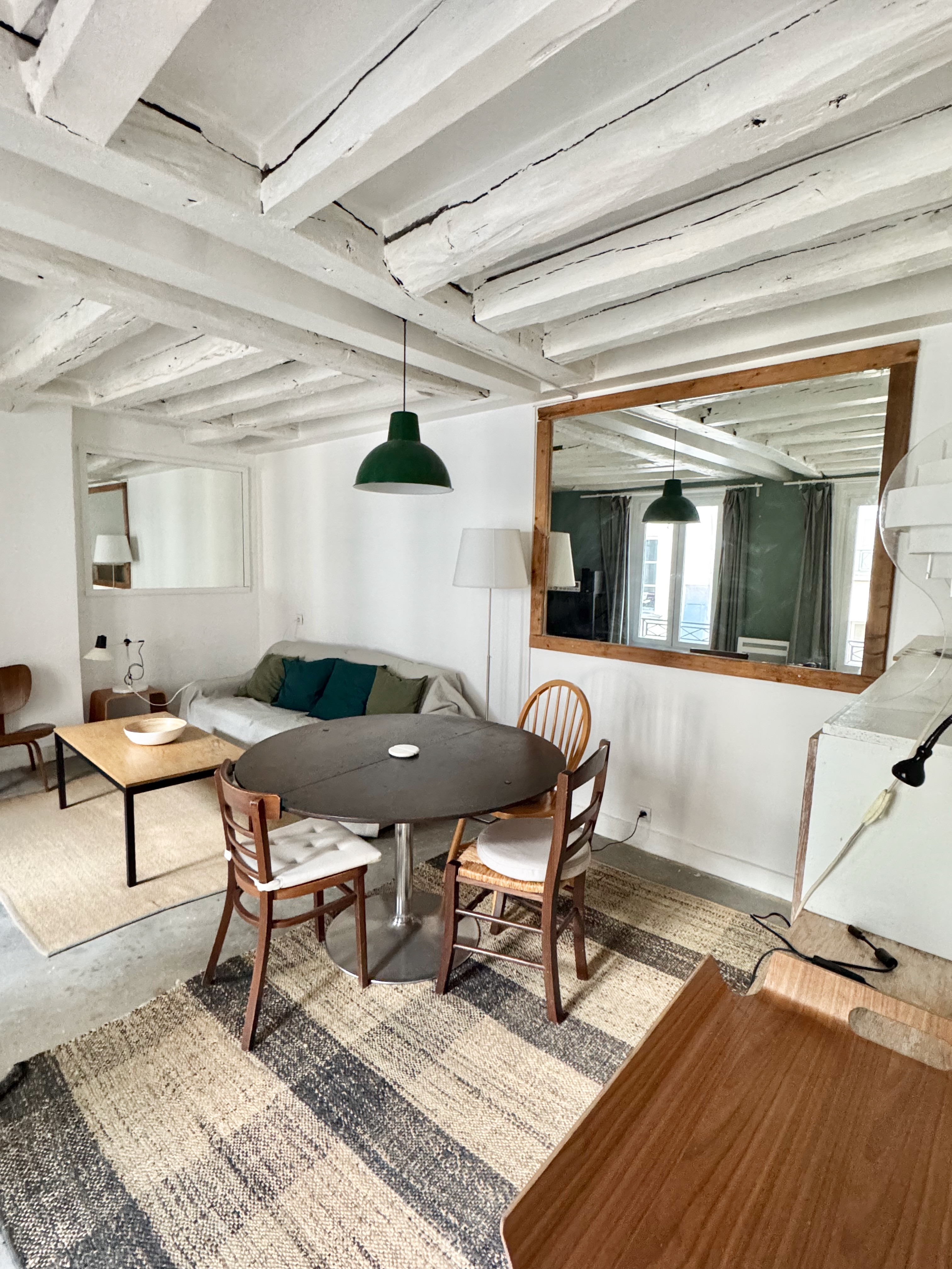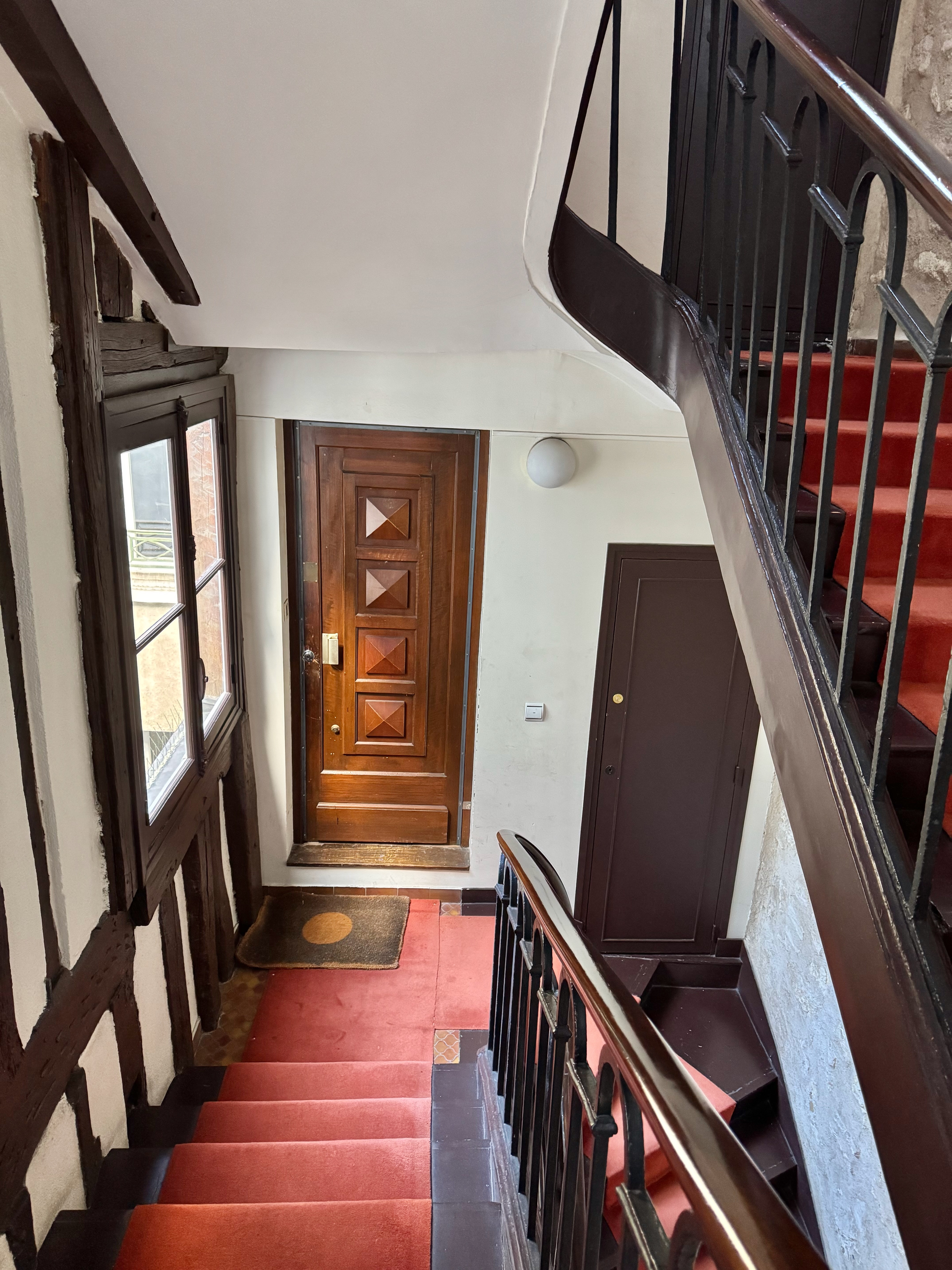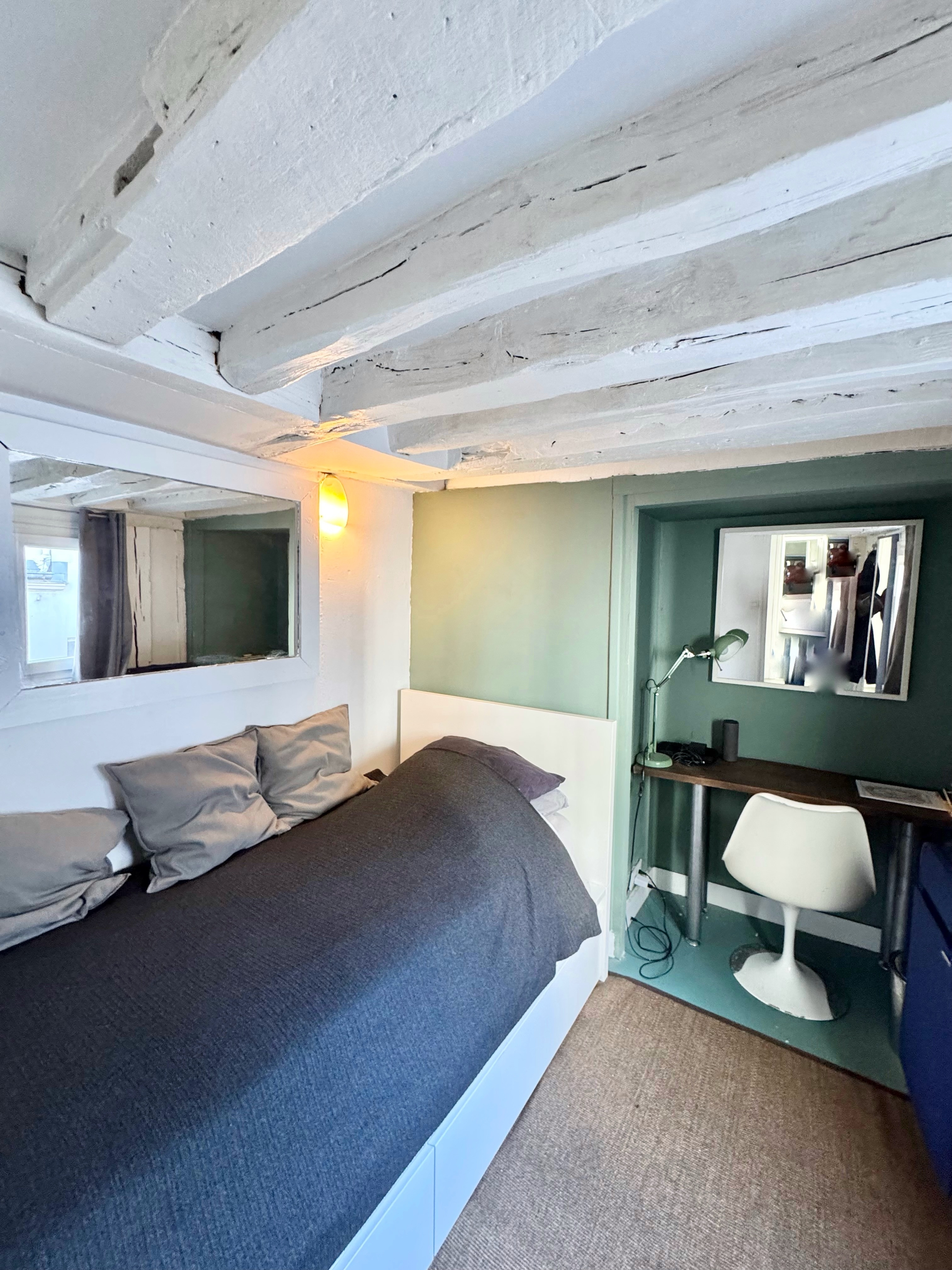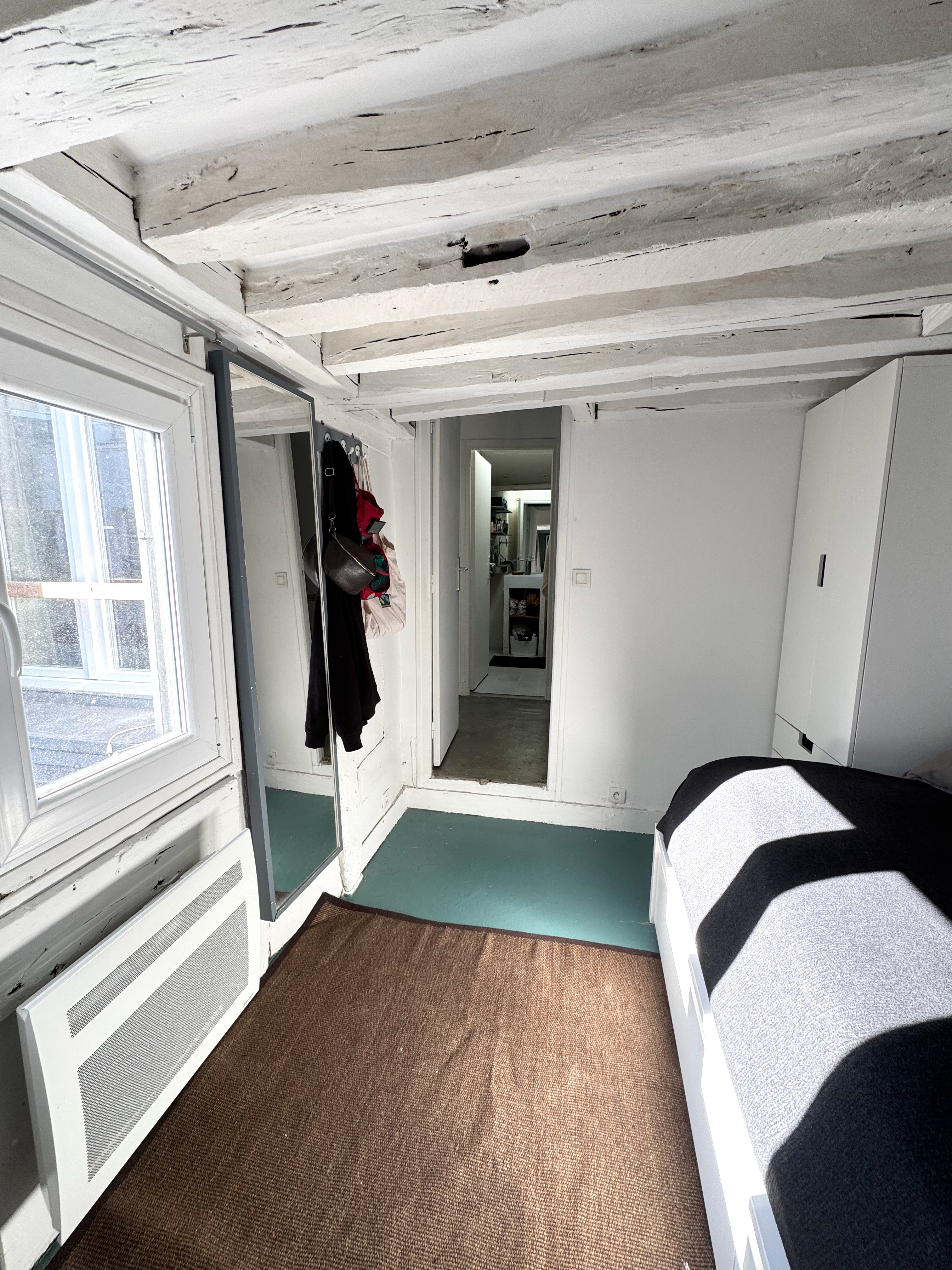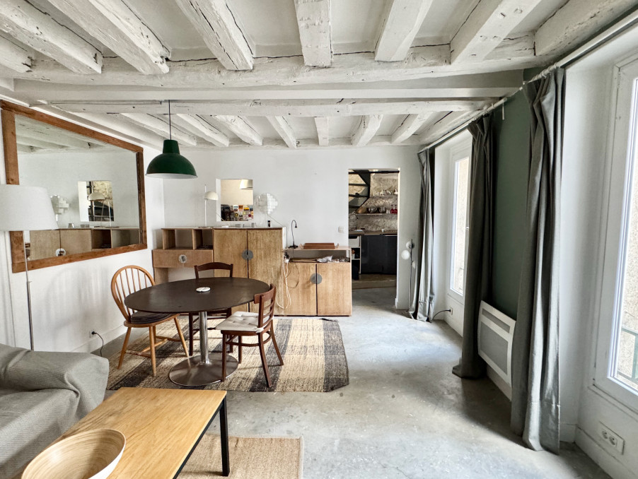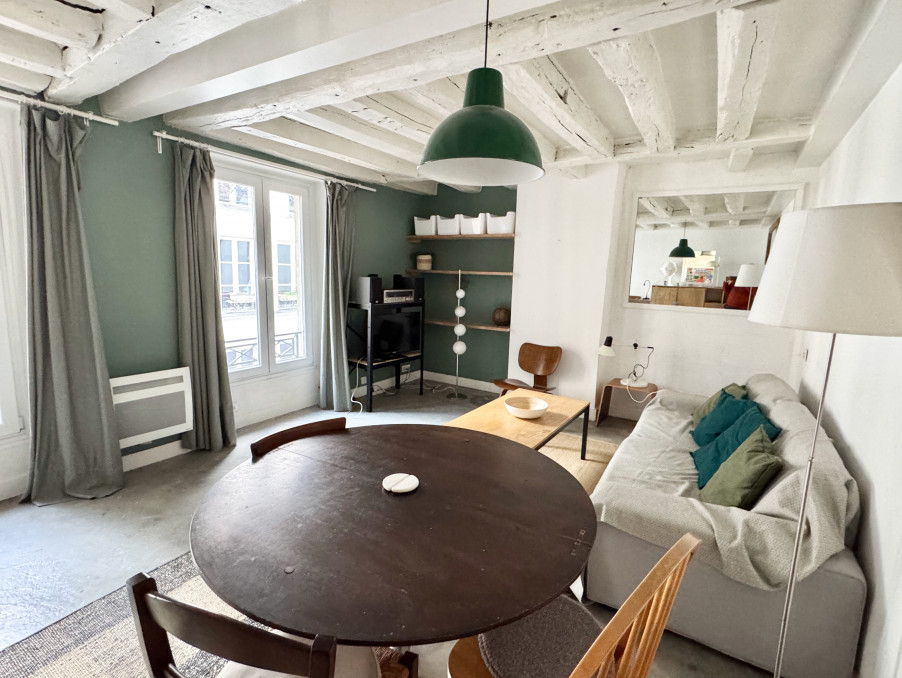 Belle adresse pour ce duplex en derniers étages rue Charlot, dans un immeuble typique du marais à colombages, aux parties commues impeccables avec digicode et interphone, au calme sur jolie cour.