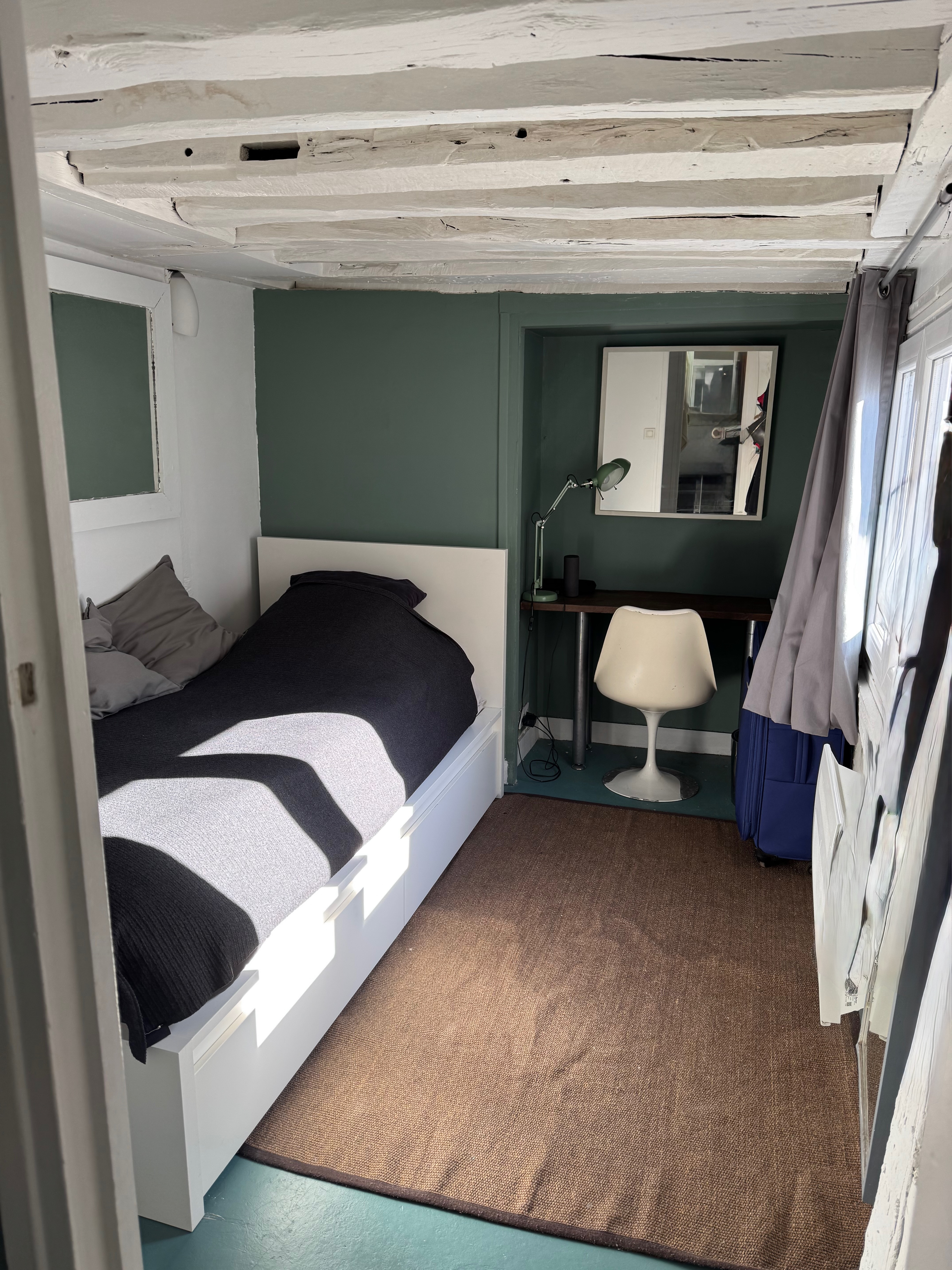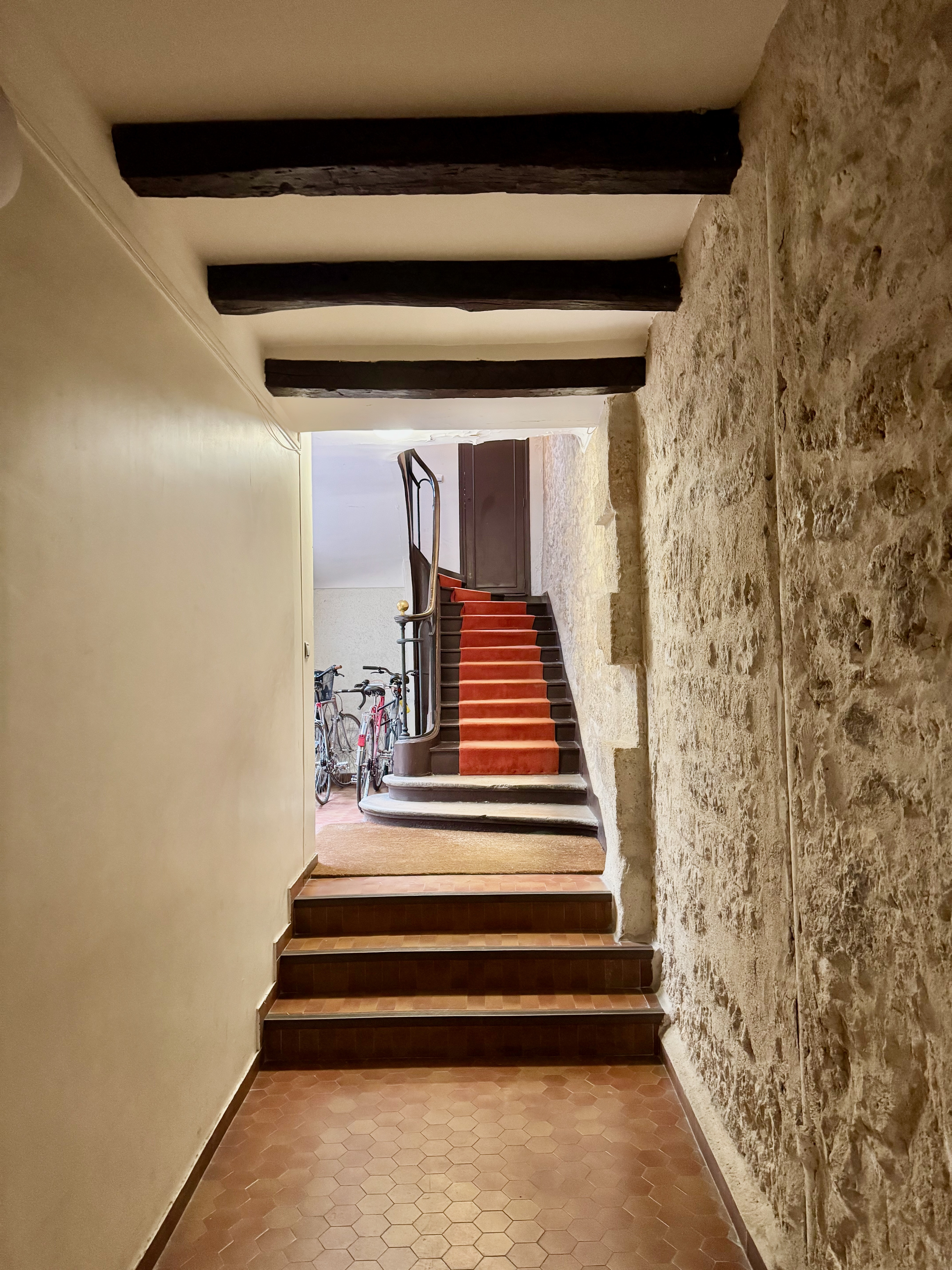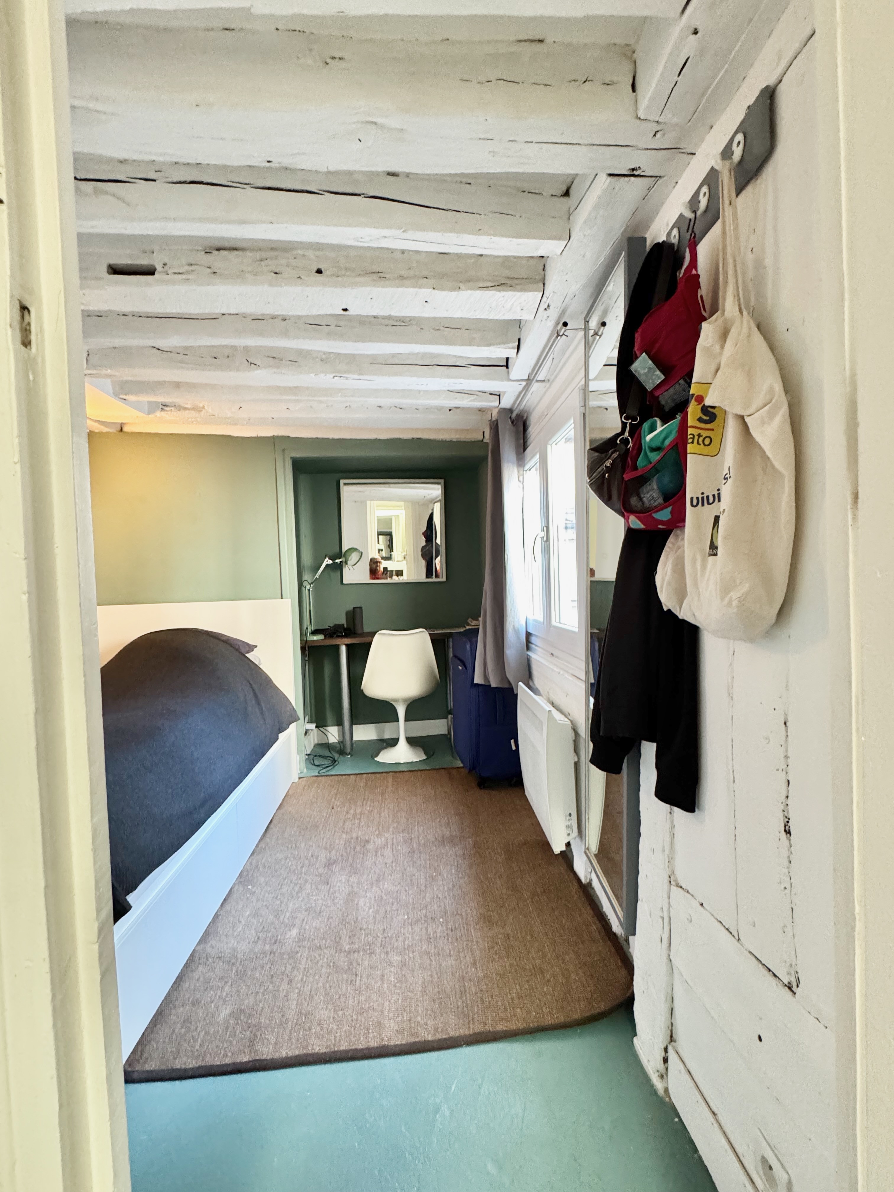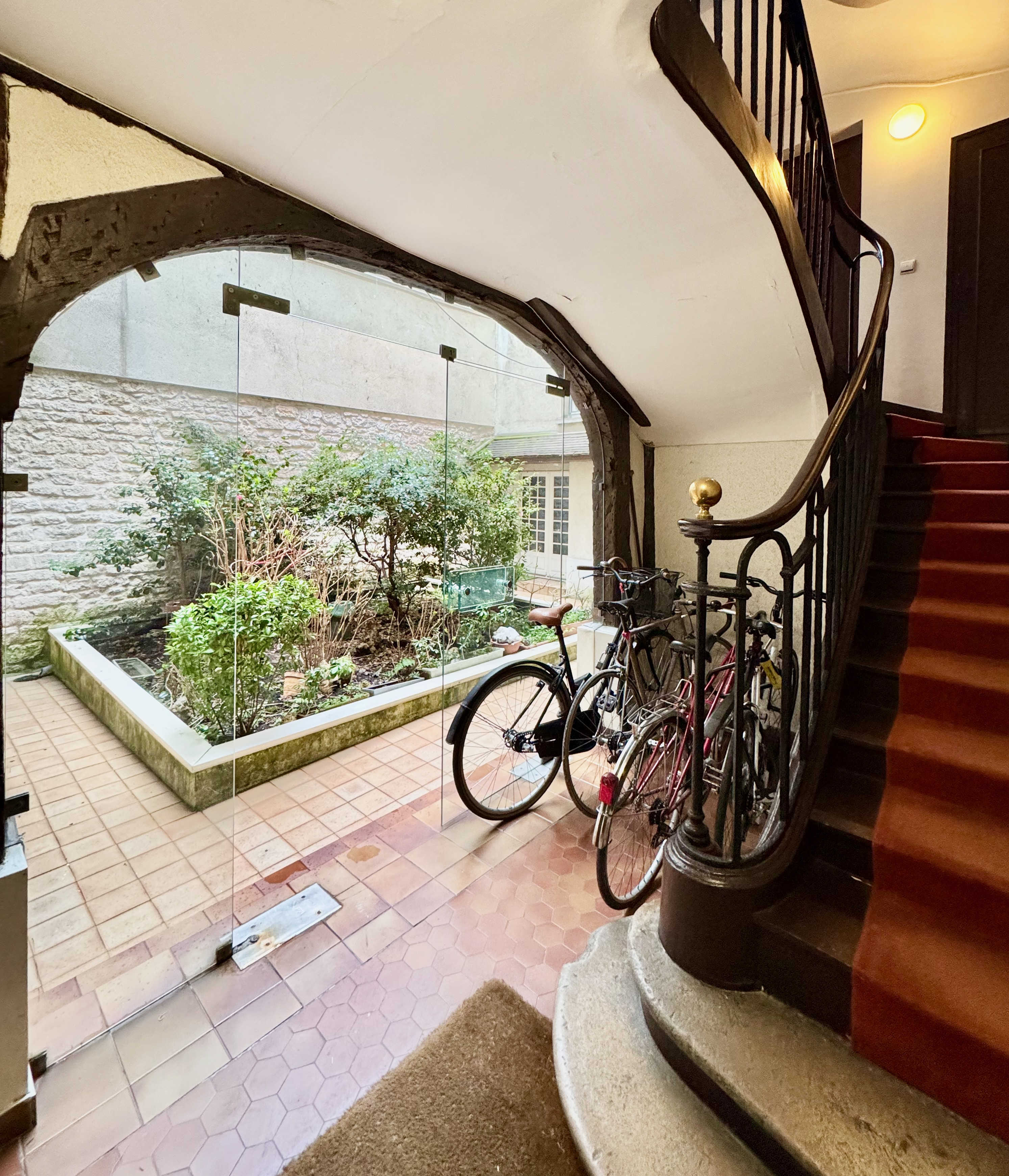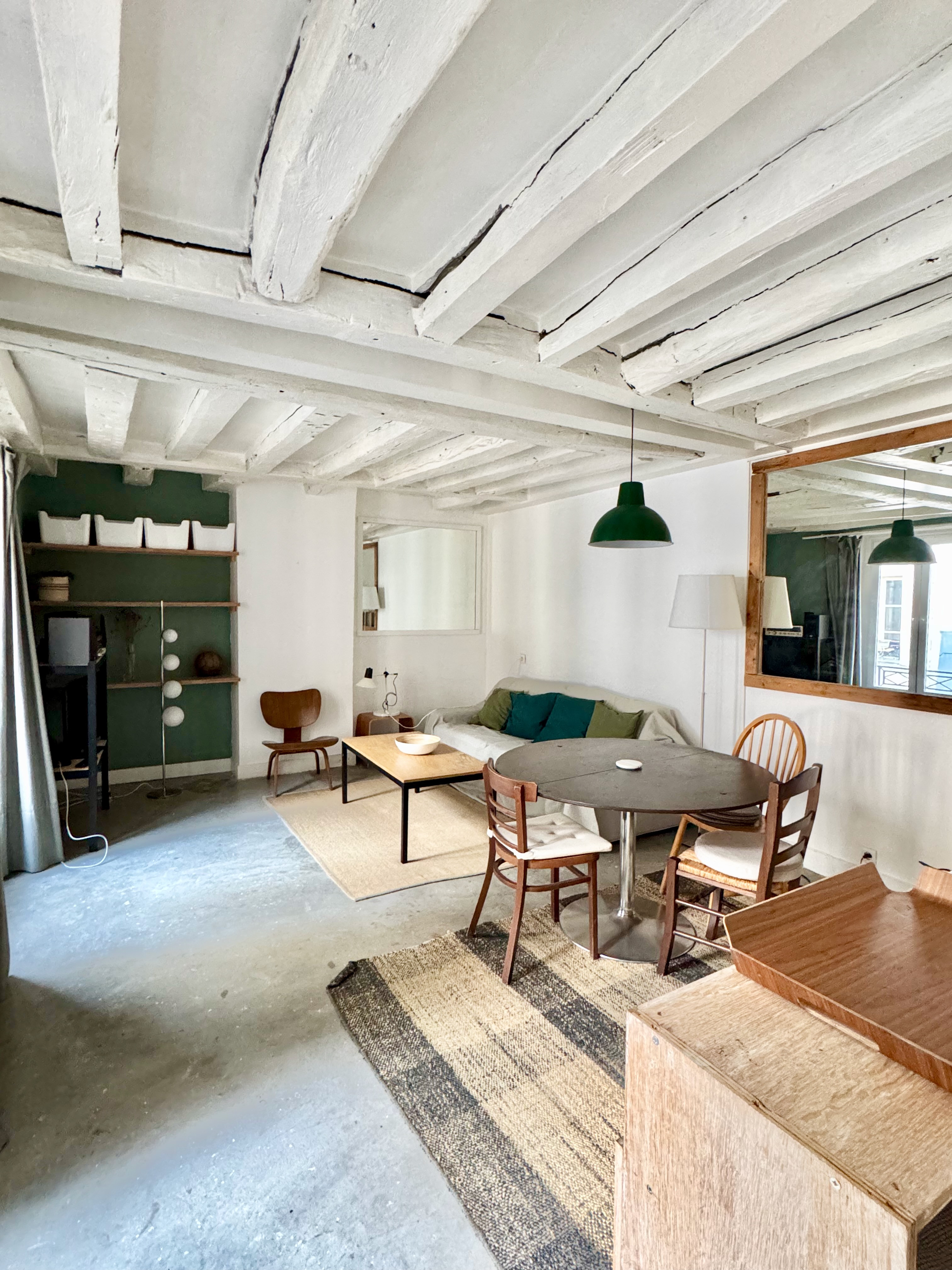 Belle adresse pour ce duplex en derniers étages rue Charlot, dans un immeuble typique du marais à colombages, aux parties commues impeccables avec digicode et interphone, au calme sur jolie cour.