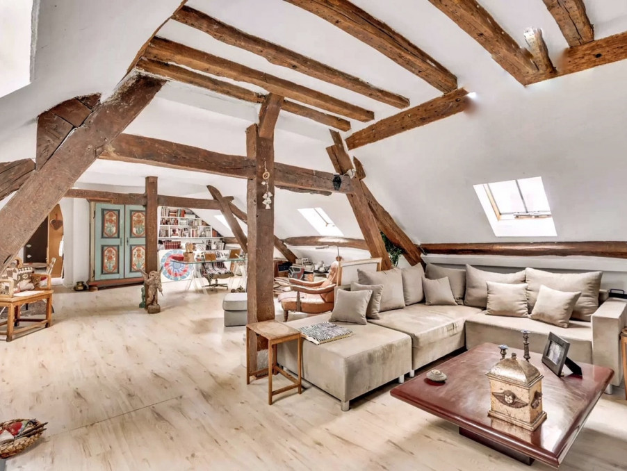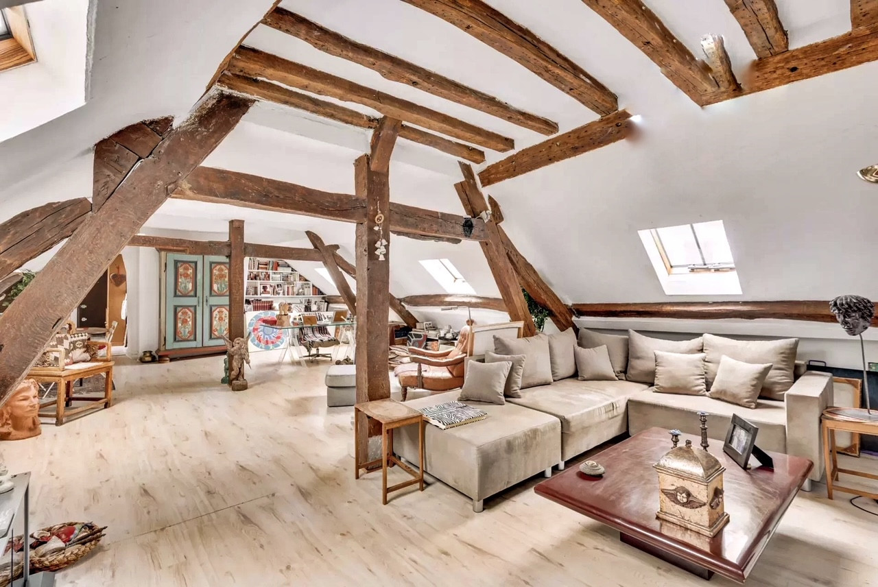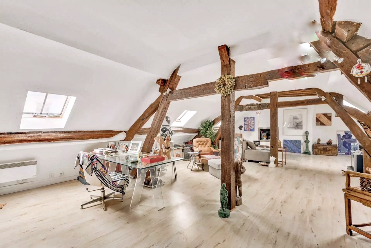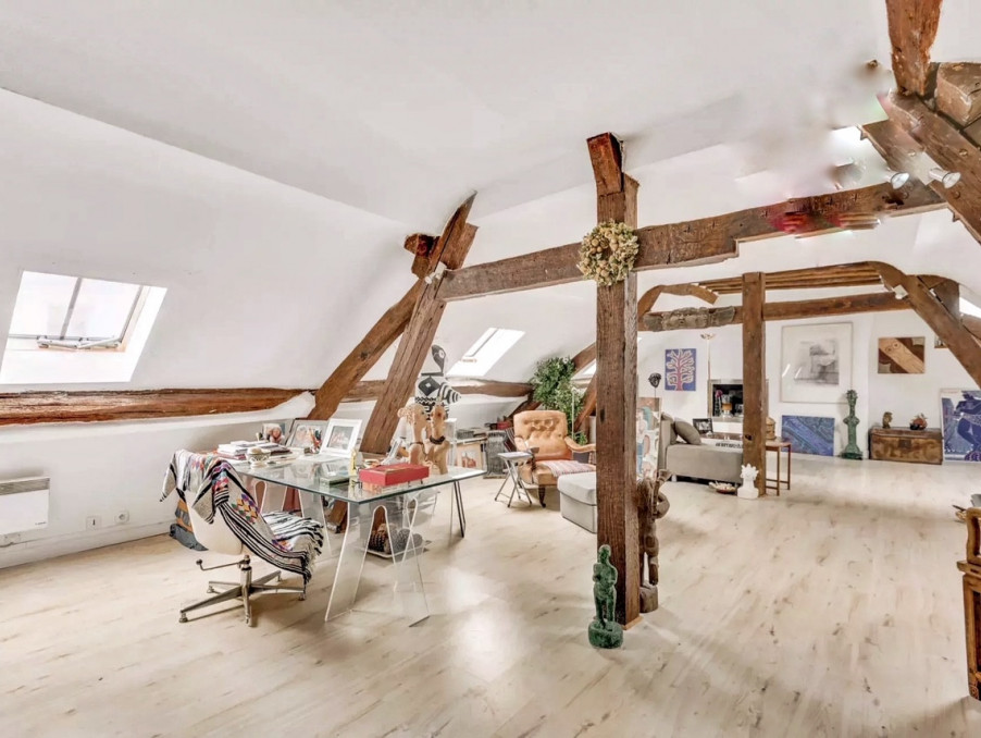 A deux pas de la Bastille, dans une rue calme, appartement style loft au dernier étage sous les toits ( 95 m2 au sol/ 60 m2 LC).