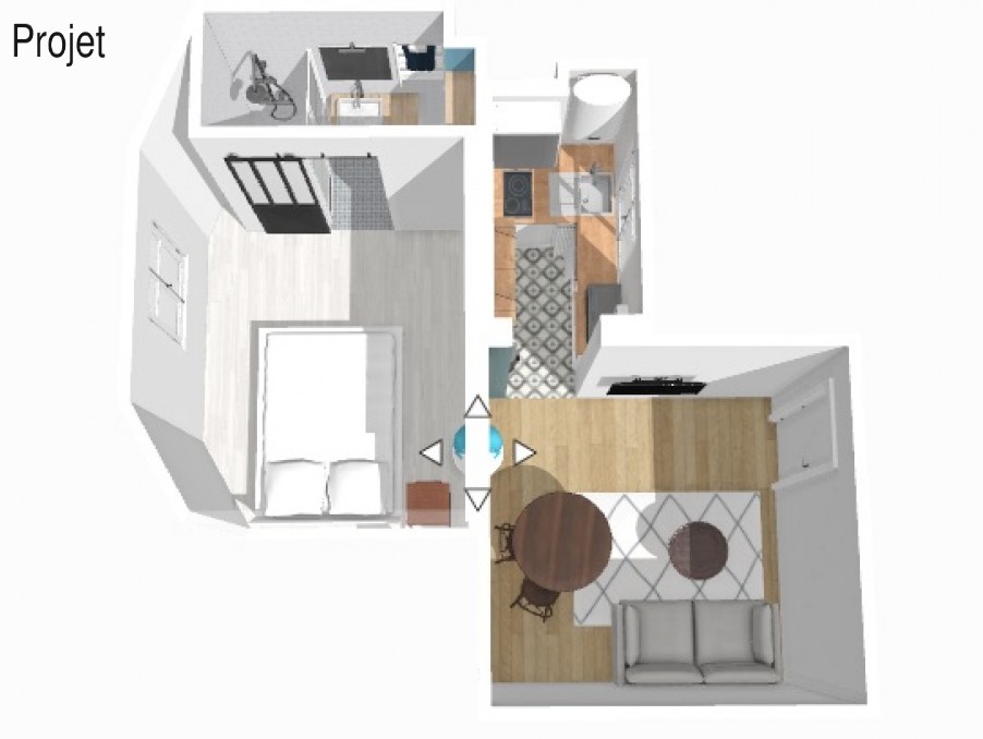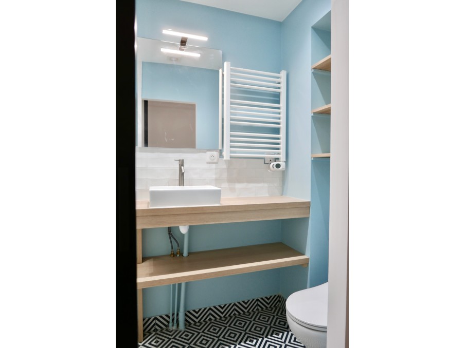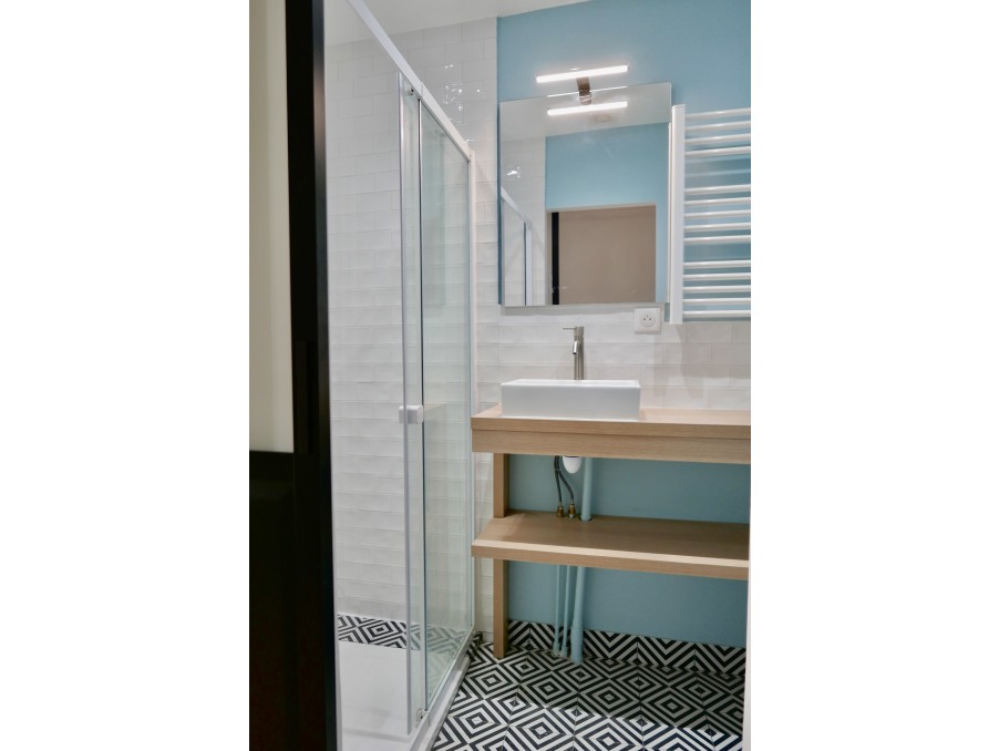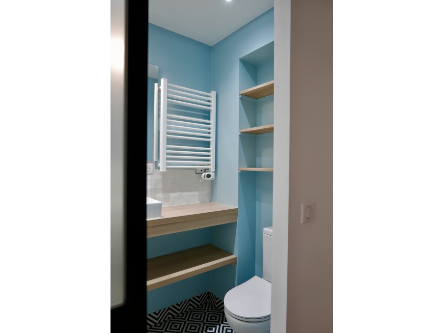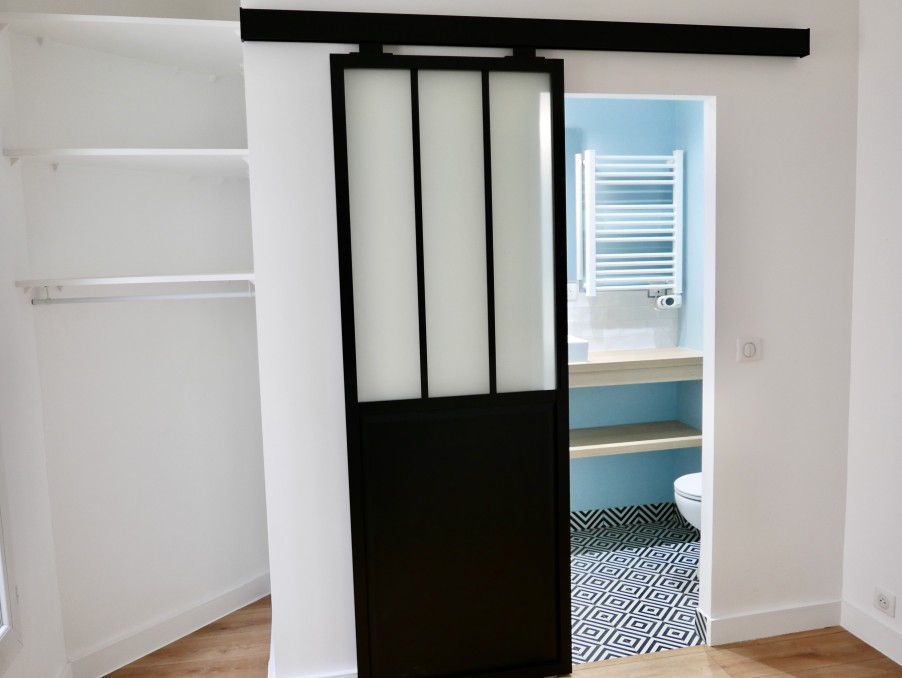 Novembre 2024 : réaménagement complet d'un deux pièces avec terrasse à but locatif.
