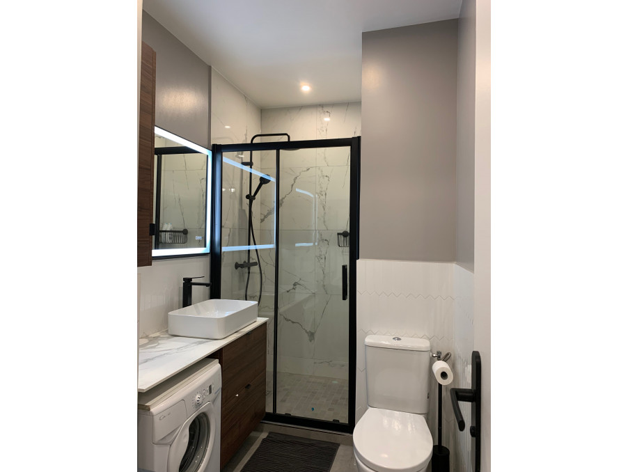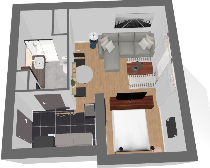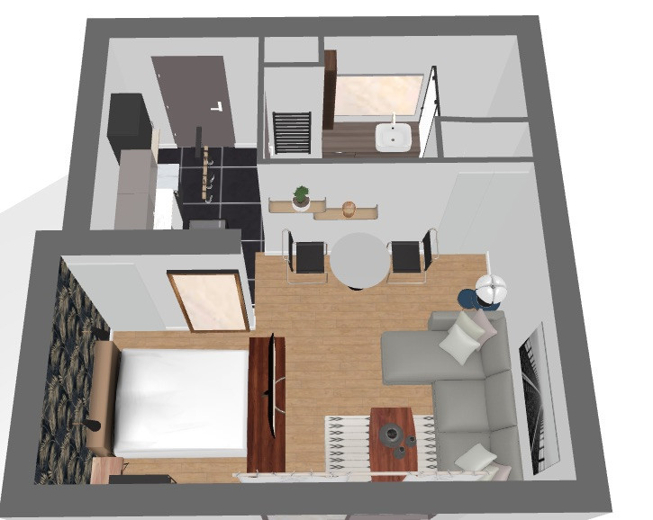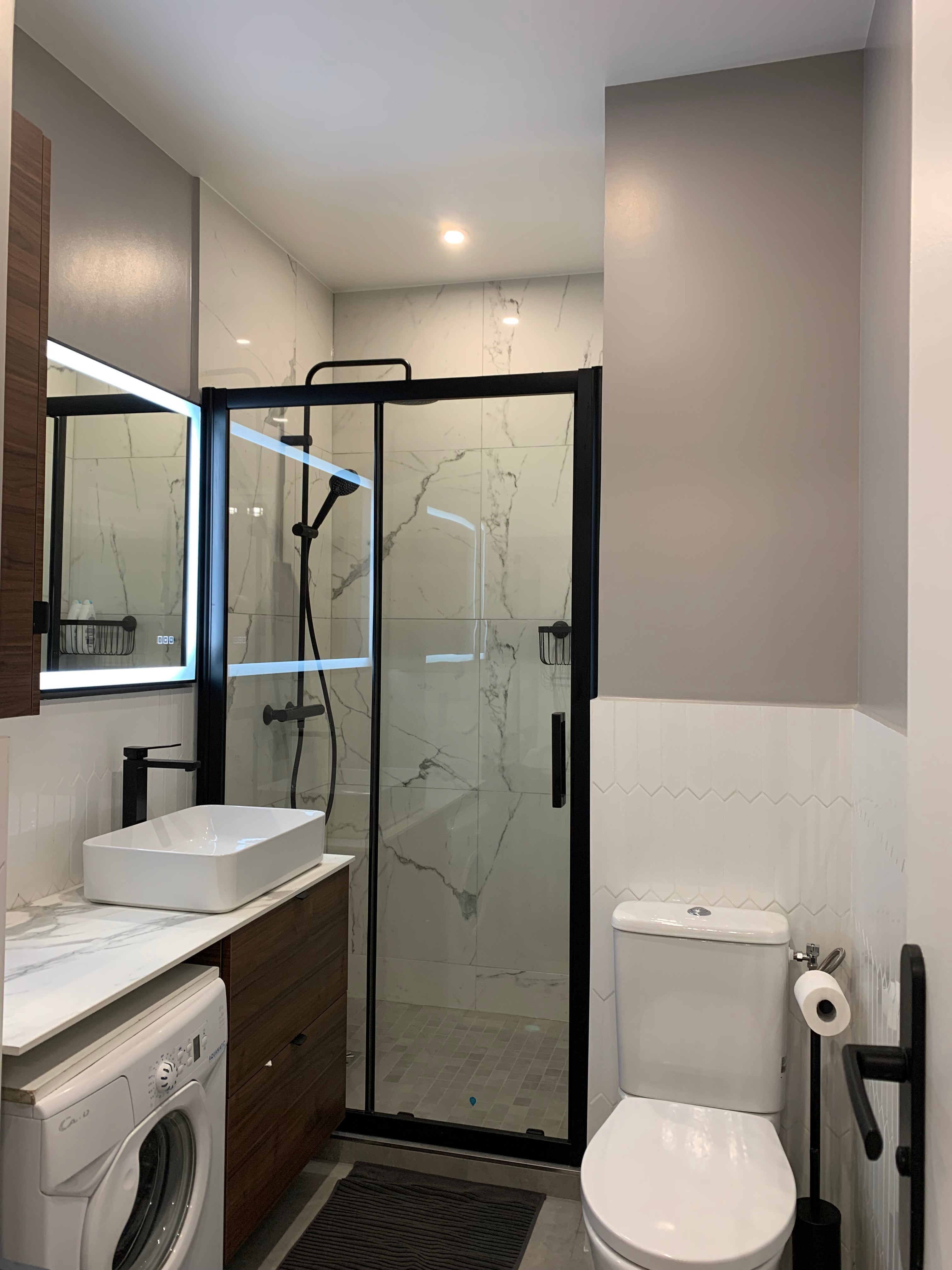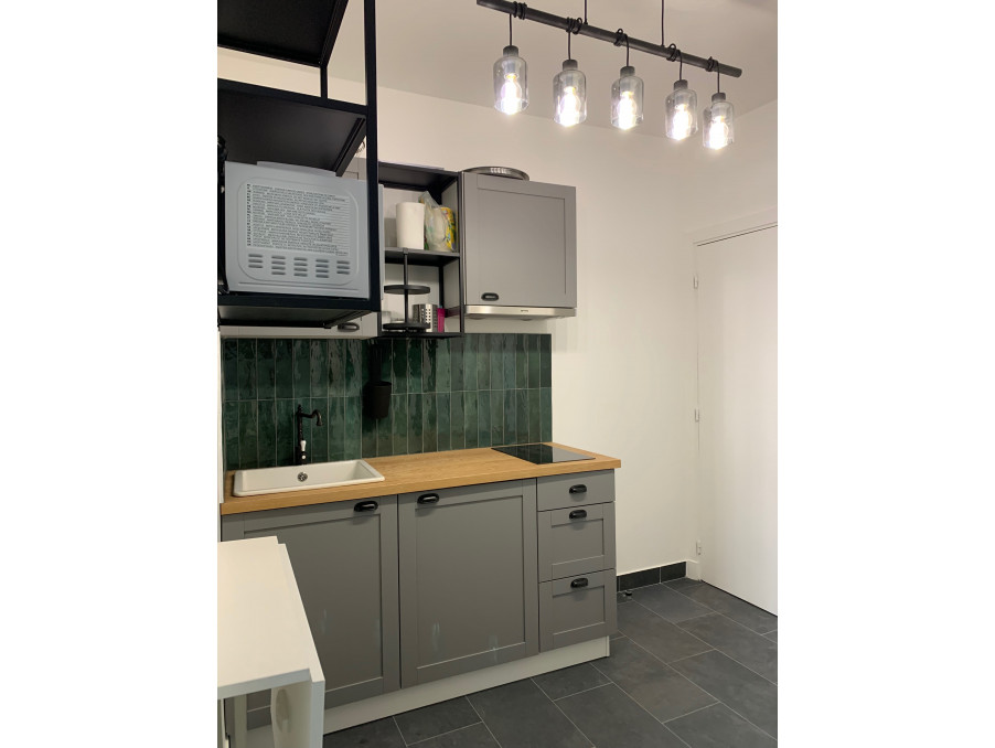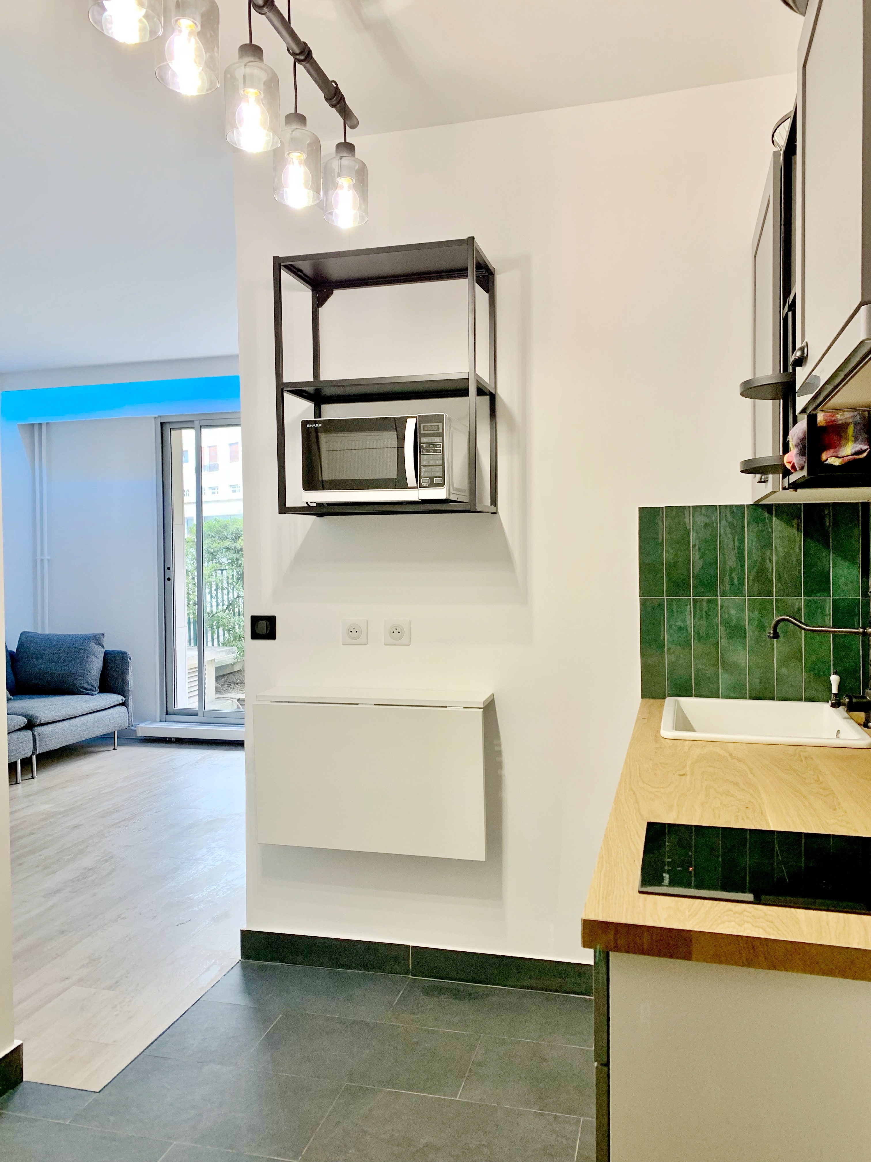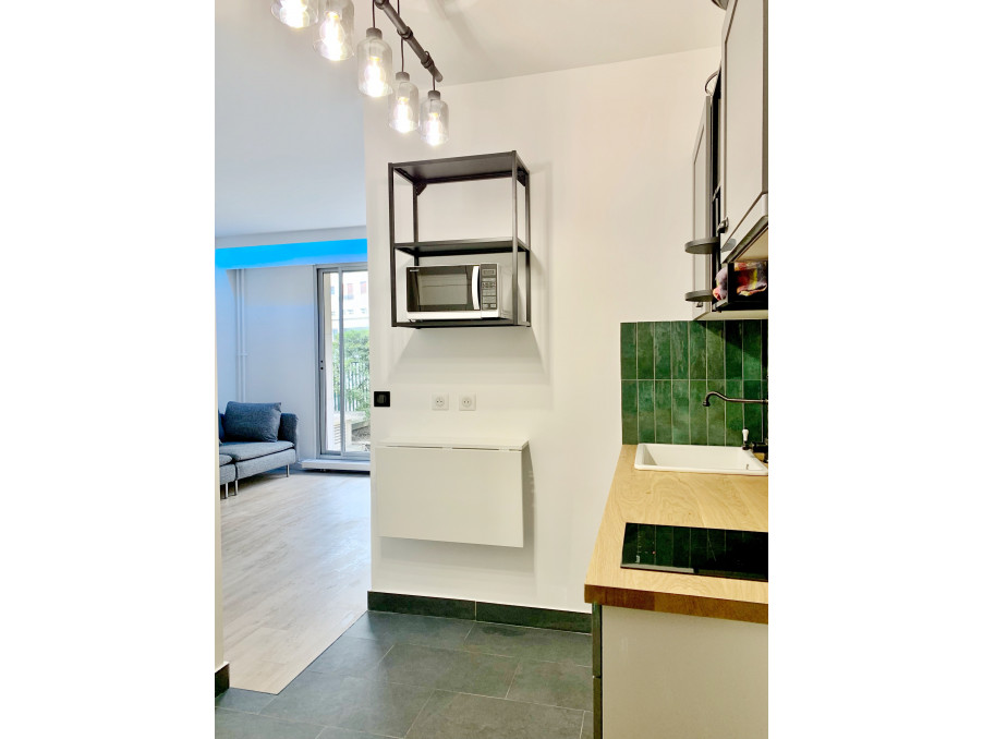 Novembre 2024 : réaménagement complet d'un deux pièces avec terrasse à but locatif. Mission : conception, conseil, maitrise d'oeuvre. Travaux : menuiserie, store, maçonnerie, électricité, plomberie,... tout corps d'état Durée des travaux : 3 mois