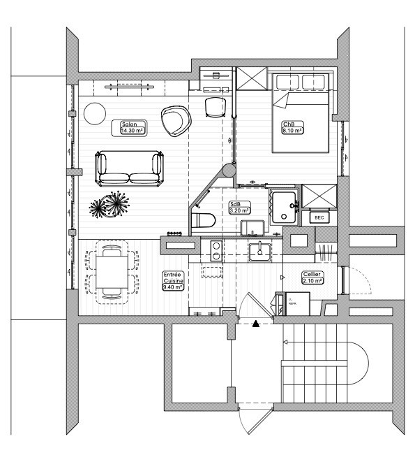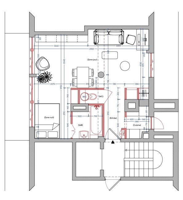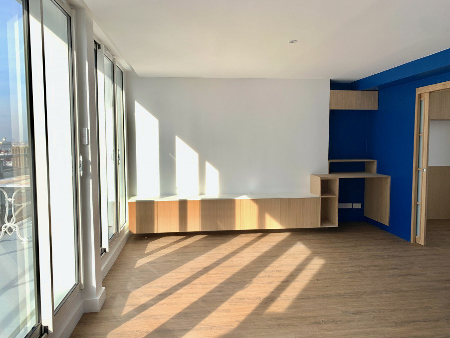 Novembre 2024 : réaménagement complet d'un deux pièces avec terrasse à but locatif.